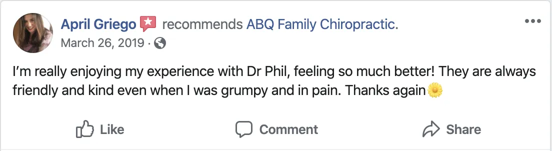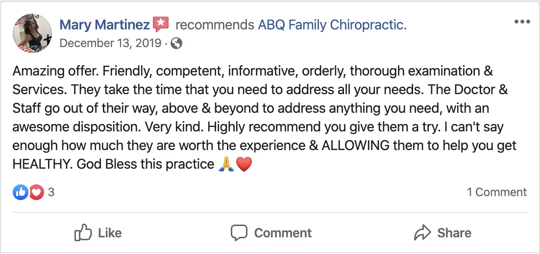This week we are running a new patient special on Facebook. By submitting your information and calling to immediately schedule an appointment, you’ll receive a consultation, exam and report of findings for the special price of $67 ($200 Value!)